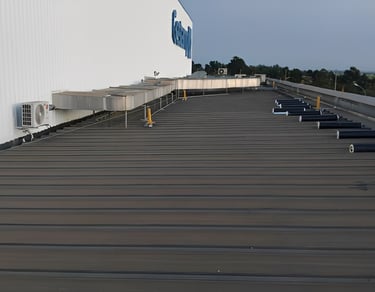 Aplicação técnica sobre telhados de zinco que acaba com infiltrações, protege a estrutura e reduz significativamente a temperatura interna, sem soluções paliativas.